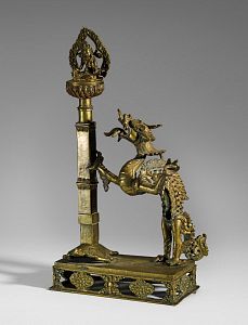 Composite object with rampant dragon, column based on a tortoise and a small seated figure Avalokiteshvara on top of it 18th-19th century