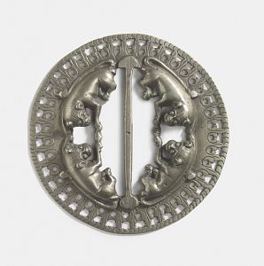 A circular belt-buckle with recumbent lion cub form 18th-19th century