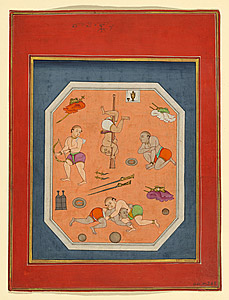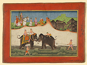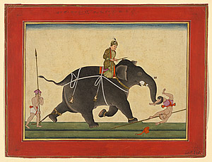 The emperor Akbar watching an elephant fight c. 1780