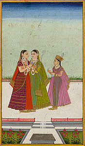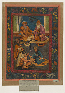 Two men relaxing with coffe and a huqqa, attended by servants 19th century