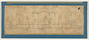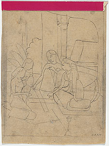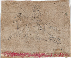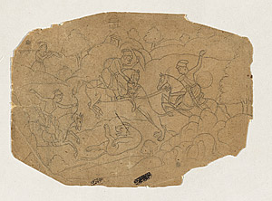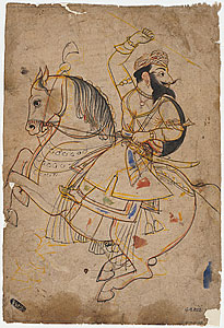 The emperor Jahangir, surrounded by portraits of his ancestors, shoots Malik Ambar c. 1840