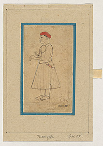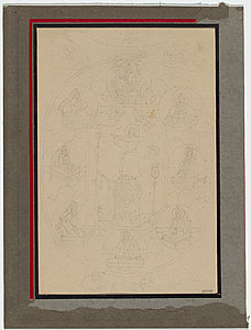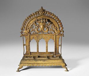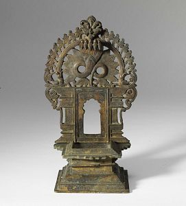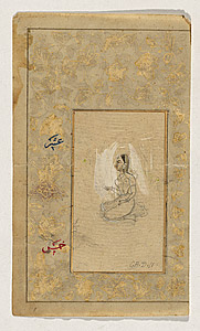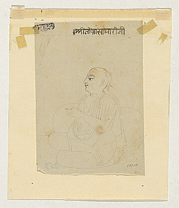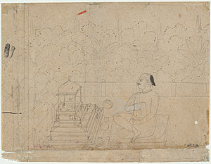 A man seated before a household shrine on a terrace in a garden c. 1800
