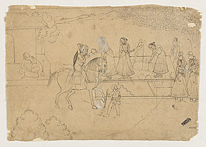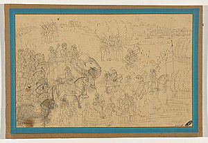 The emperor Akbar at the head of an Imperial hunting party mid 19th century