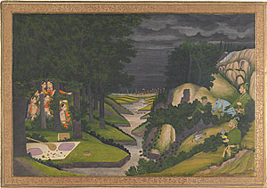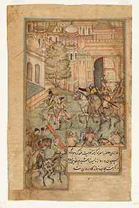 Prince Babur arriving at Andijan; page from a Baburnama manuscript c. 1590