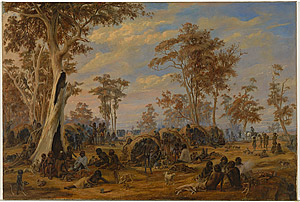 Adelaide, a tribe of natives on the banks of the River Torrens 1850