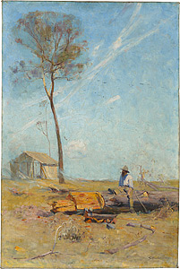 The selector's hut (Whelan on the log) 1890