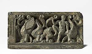 Fragment of a frieze with winged dragons and rider 3rd century
